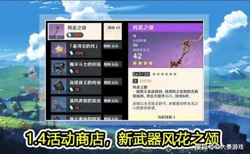 除了新角色,原神1.4版本还将带来全新的武器。其中,最引人注目的莫过于莫娜的专属武器——莫娜之弓。这款武器拥有着独特的元素反应,能够与莫娜的元素爆发产生共鸣,大幅提升她的输出能力。此外,还有一款名为“断流”的五星单手剑,它拥有着极高的攻击力,非常适合喜欢近战玩家的使用。